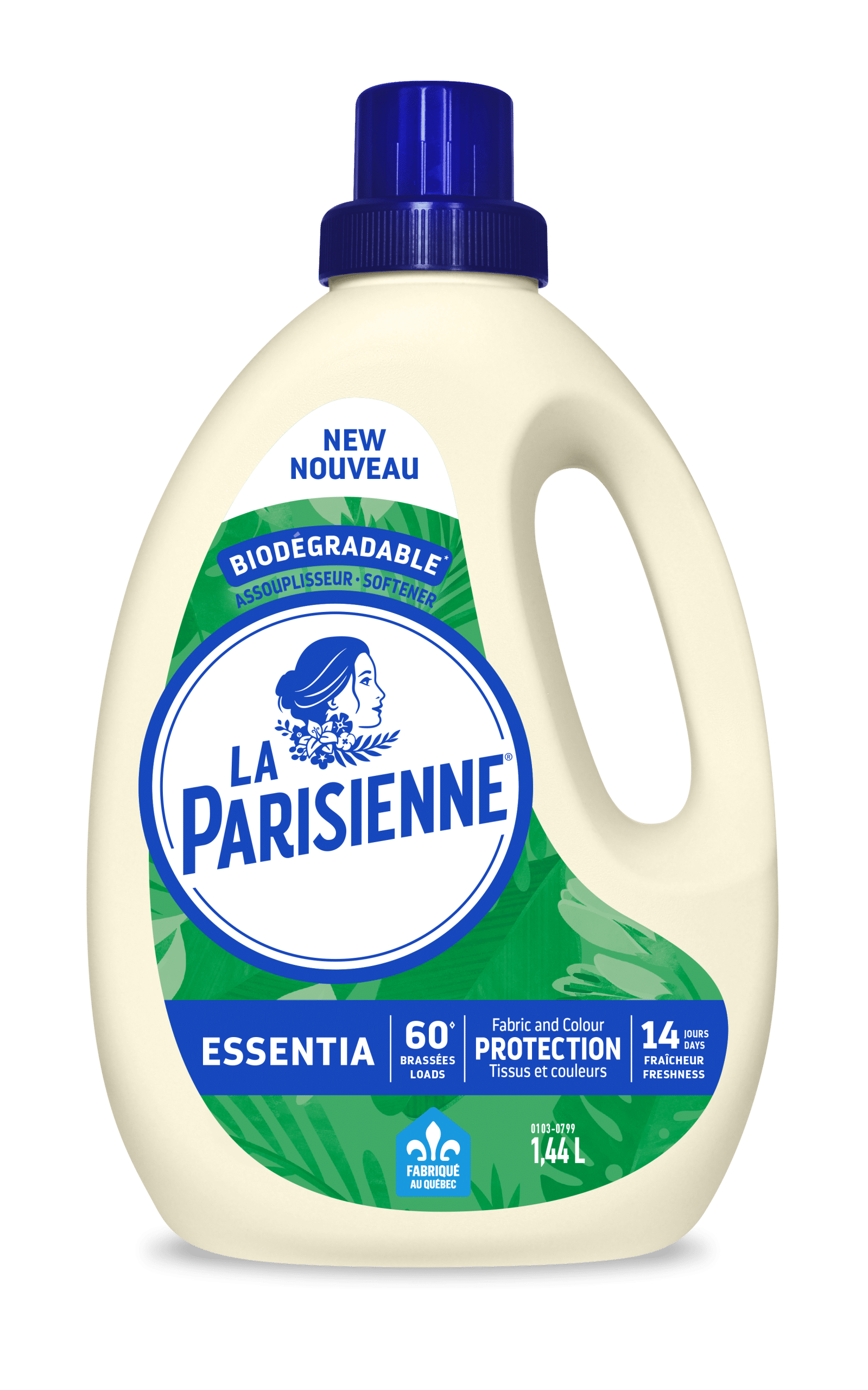 L’assouplisseur biodégradable* La ParisienneMD rend vos vêtements plus doux que jamais. Il laisse une odeur de fraîcheur qui dure jusqu’à 14 jours entre le lavage et le moment de porter les vêtements, en plus de réduire considérablement l’électricité statique. Sa technologie de protection des tissus et des couleurs préserve l’aspect de vos vêtements préférés, qui paraissent neufs plus longtemps.