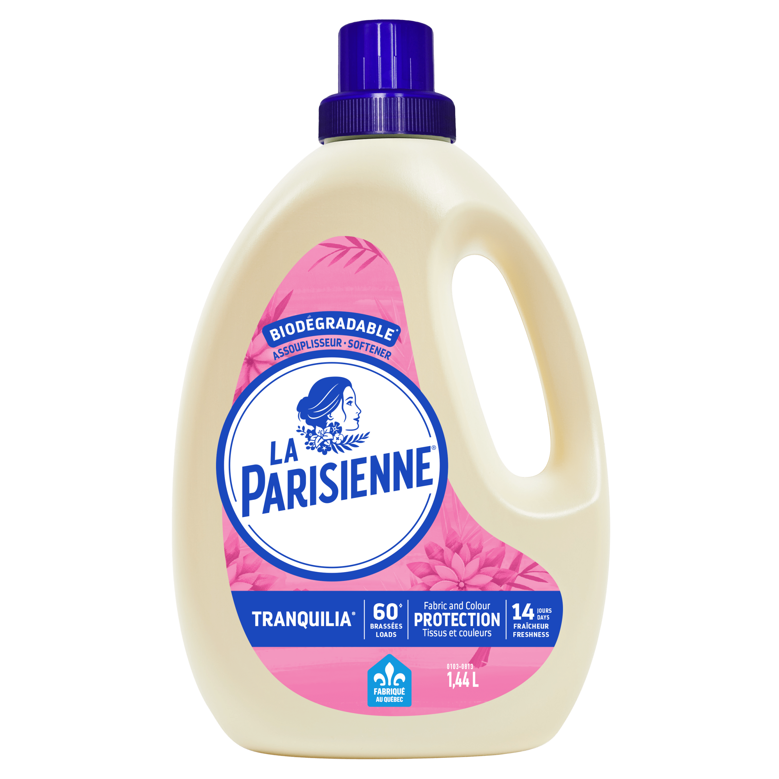 L’assouplisseur biodégradable* La ParisienneMD rend vos vêtements plus doux que jamais. Il laisse une odeur de fraîcheur qui dure jusqu’à 14 jours entre le lavage et le moment de porter les vêtements, en plus de réduire considérablement l’électricité statique. Sa technologie de protection des tissus et des couleurs préserve l’aspect de vos vêtements préférés, qui paraissent neufs plus longtemps.