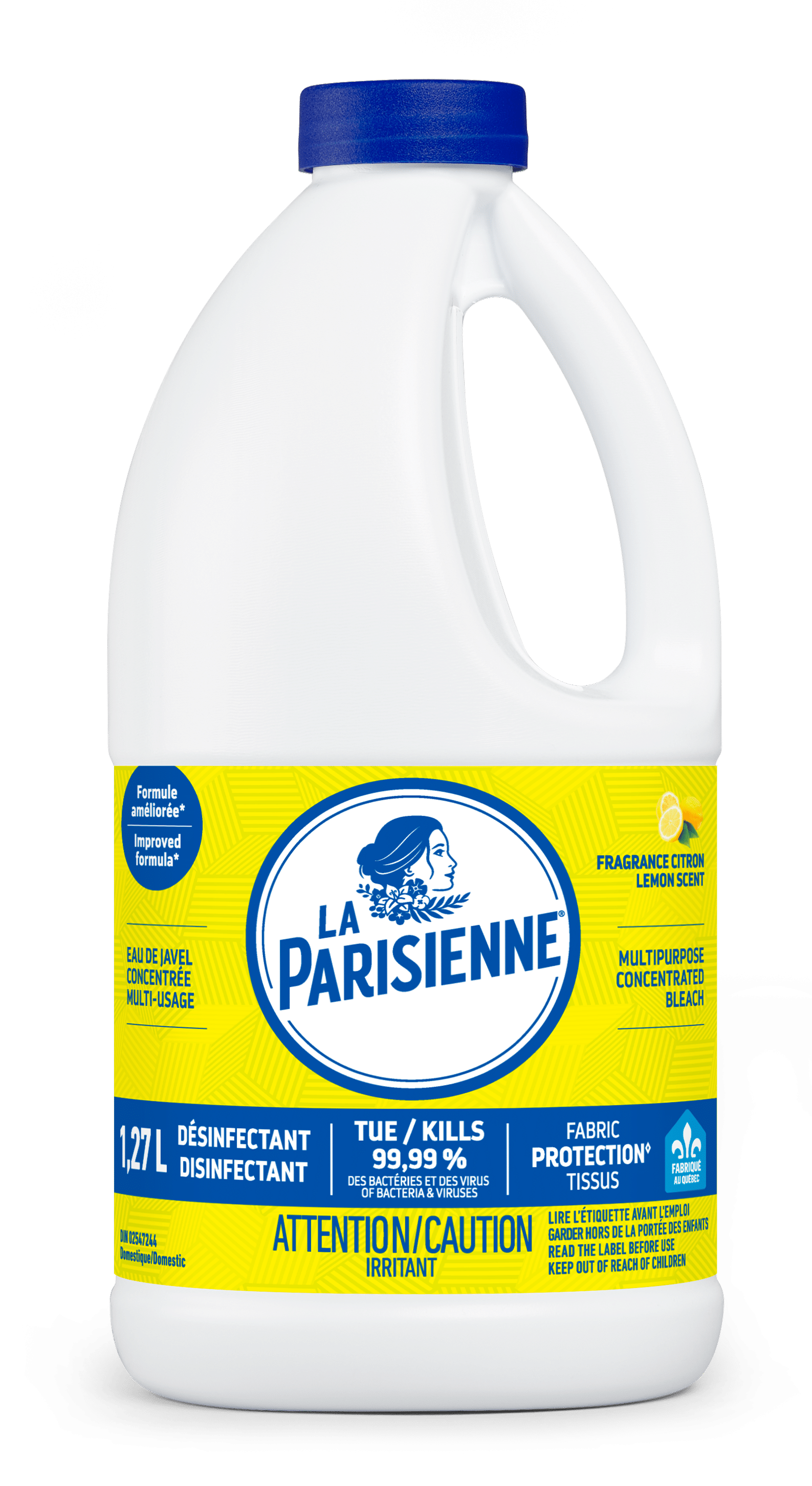L’eau de Javel multi-usage protège les tissus contre le jaunissement et les garde plus blancs plus longtemps. Sa formule concentrée élimine 99,99 % des bactéries et des virus. La javel La Parisienne fait partie de la routine de nettoyage des Québécois depuis plus de 100 ans!